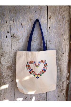 Plátěná taška s vyšívaným folklorním motivem srdíčka z Podluží.