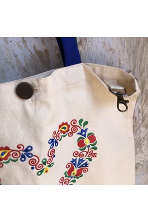 Vyšívaná taška je k dostání s MODRÝMI bavlněnými uchy.